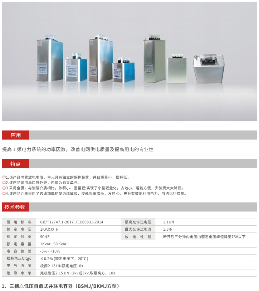 標(biāo)稱電壓1KV及以下自愈式并聯(lián)電容器