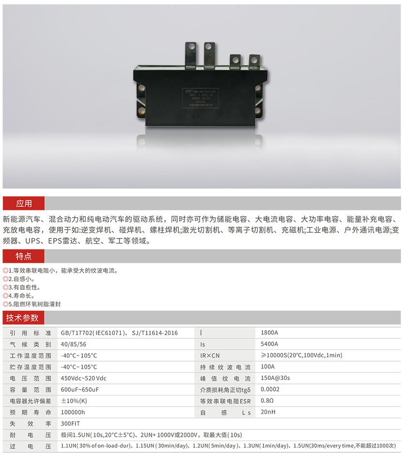 電動汽車驅(qū)動電機(jī)系統(tǒng)用金屬化薄膜電容器